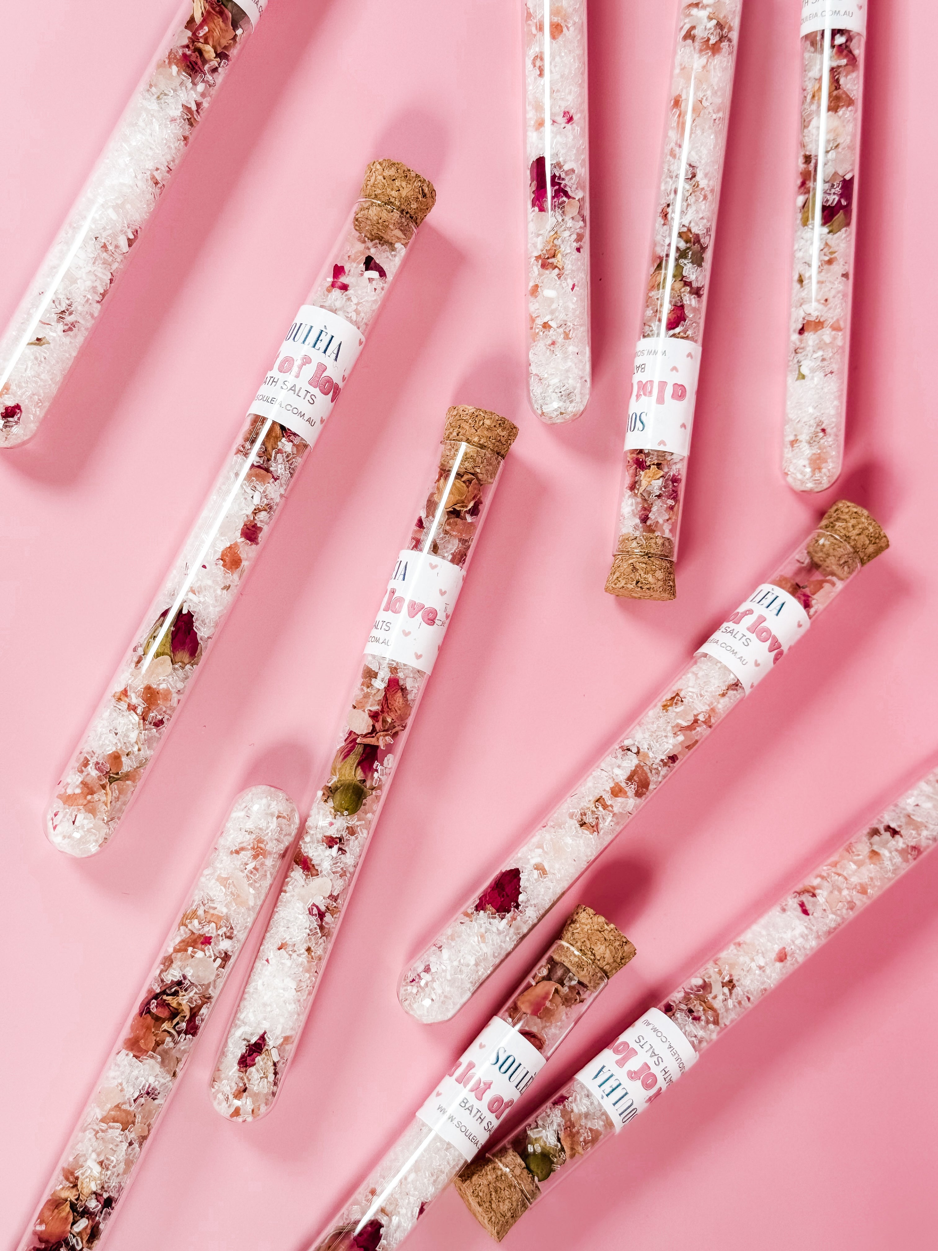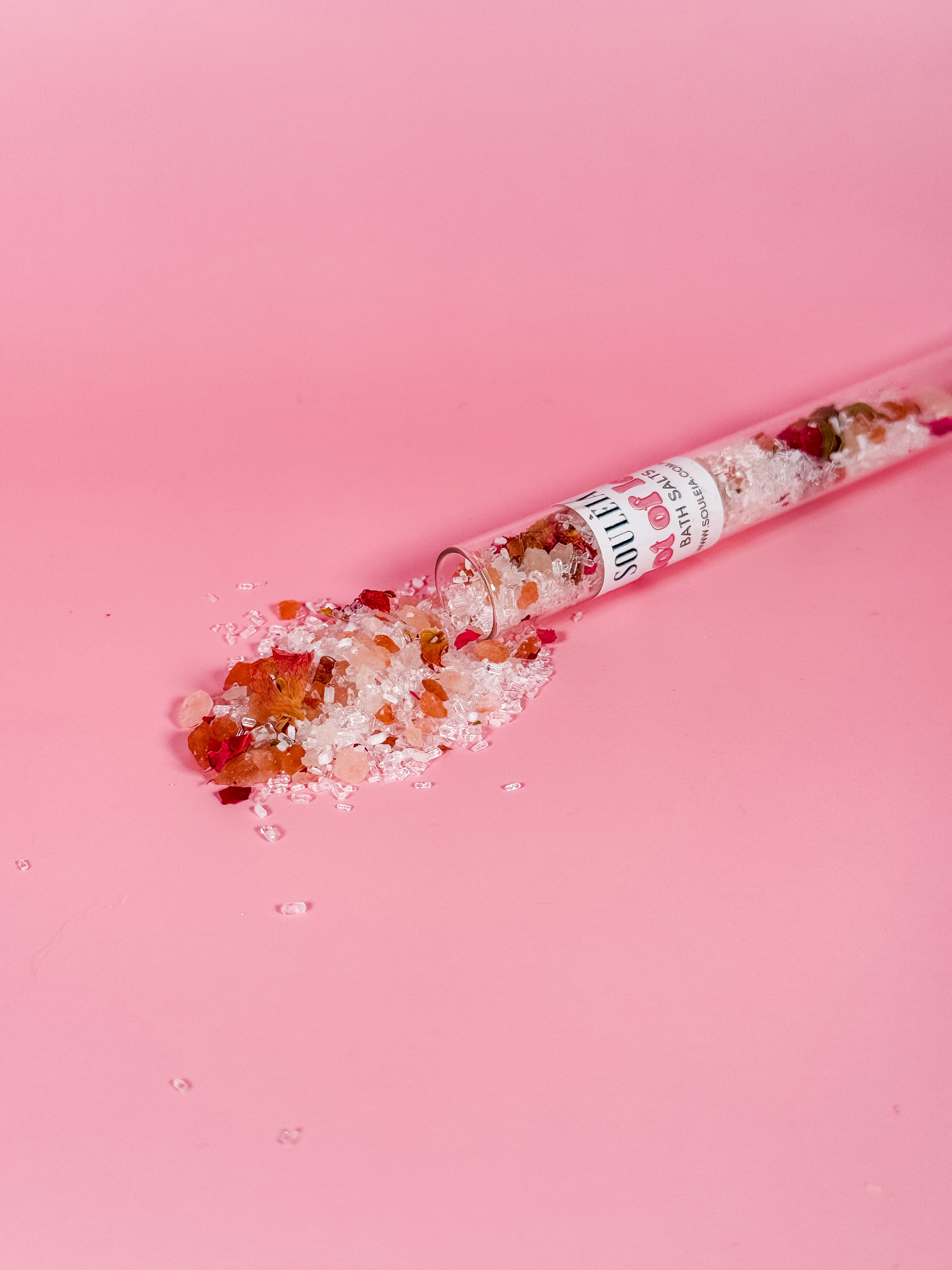 Ingredients: Epsom Salt, Himalayan Salt, Dried Rose Petals, Rose Geranium Essential Oil, Pink Grapefruit Essential Oil.