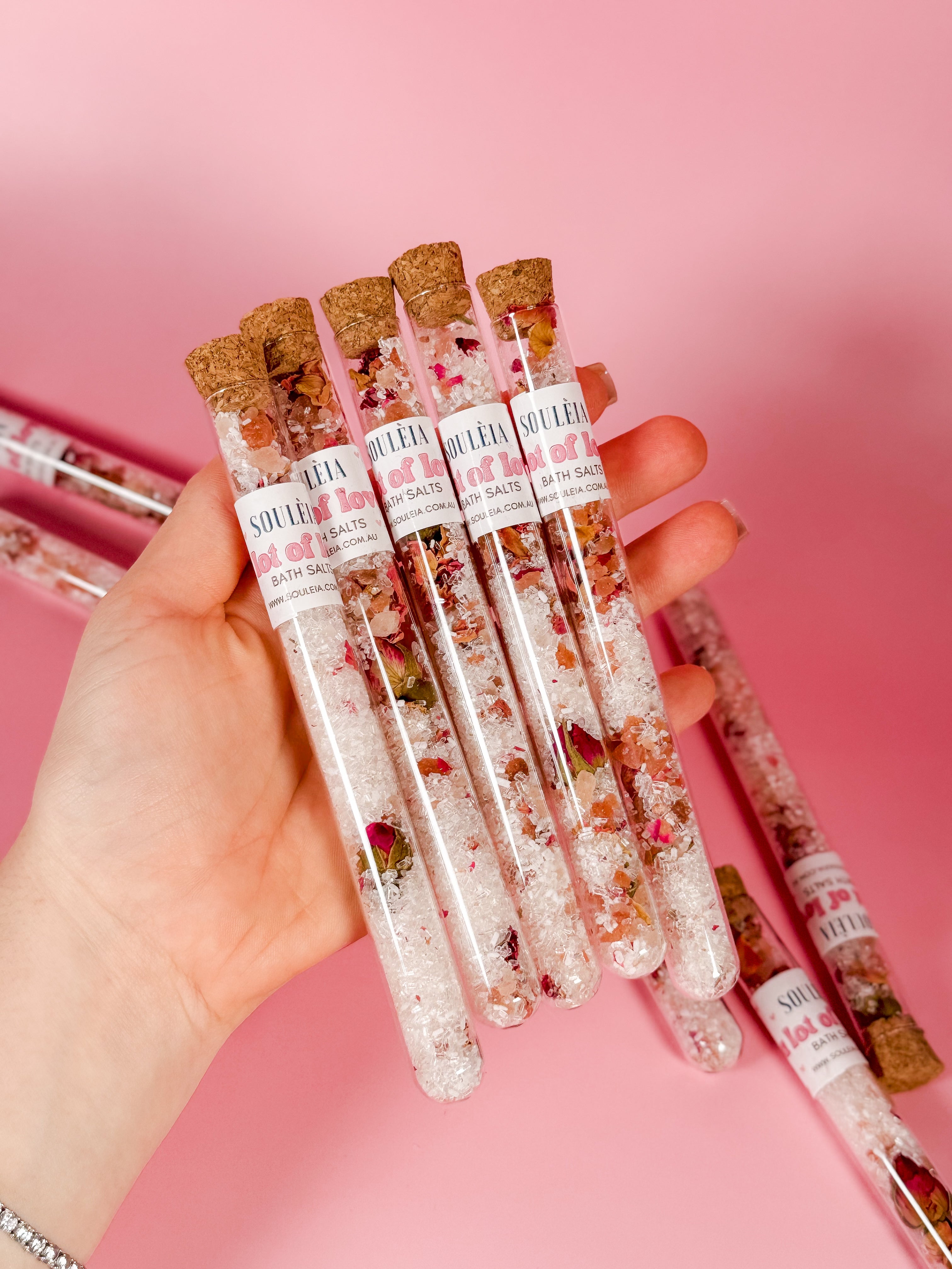 Elevate your self-care routine with our A Lot of Love Bath Soak. Our vegan-friendly blend of rose geranium and grapefruit essential oils, preserved rose petals, and epsom salt & himalayan salt will nourish your body and mind. Enjoy 100% pure and natural ingredients, free from GMO's or synthetics.